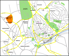 It is located on Kasubi Hill, five kilometers from Kampala city center, along the Kampala-Hoima Road. When coming from Kampala city center, pass Makerere University and drive down to Nakulabye. At the Nakulabye roundabout, go right onto Hoima Road, drive 1 kilometer and turn left to go up the Kasubi Hill. At the top of the hill, turn left onto Masiro Road and follow it to the entrance of Kasubi Tombs, which is marked by a thatched hut. The trip is approximately 15 minutes from Kampala.