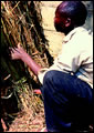 Creating cloth fabric from the soft bark of the fig tree (ficus natalensis) is one of the more fascinating Ganda skills. This bark cloth, called olubugo, has a strong ritual importance to the people of Buganda. To make this soft and resistant fabric, the outer bark of the tree is carefully removed and then alternately soaked and beaten with a grooved wooden mallet, until the fibers become flexible. The bark then re-grows and can be harvested again a year later.