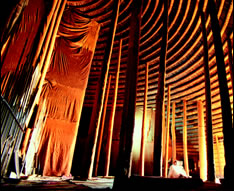The whole structure is supported by gigantic straight wooden poles wrapped in bark cloth. This creates a striking impression of harmony and power.